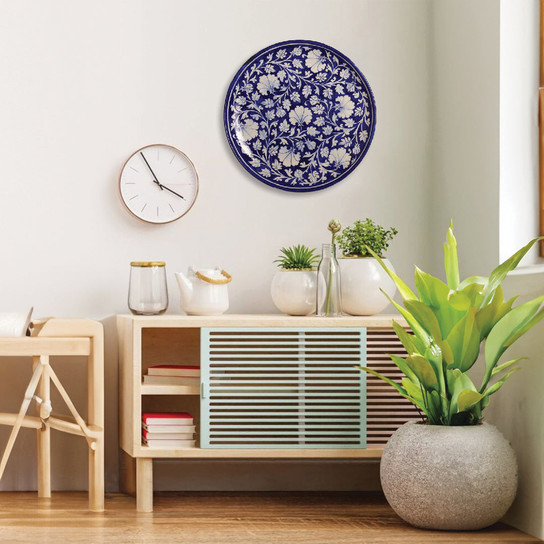 This handmade blue pottery wall plate adds charm and sophistication to any room. Each unique piece features intricate, hand-painted designs, available in various sizes to fit any space. Perfect for adding a personal touch to living rooms, dining areas, or bedrooms.