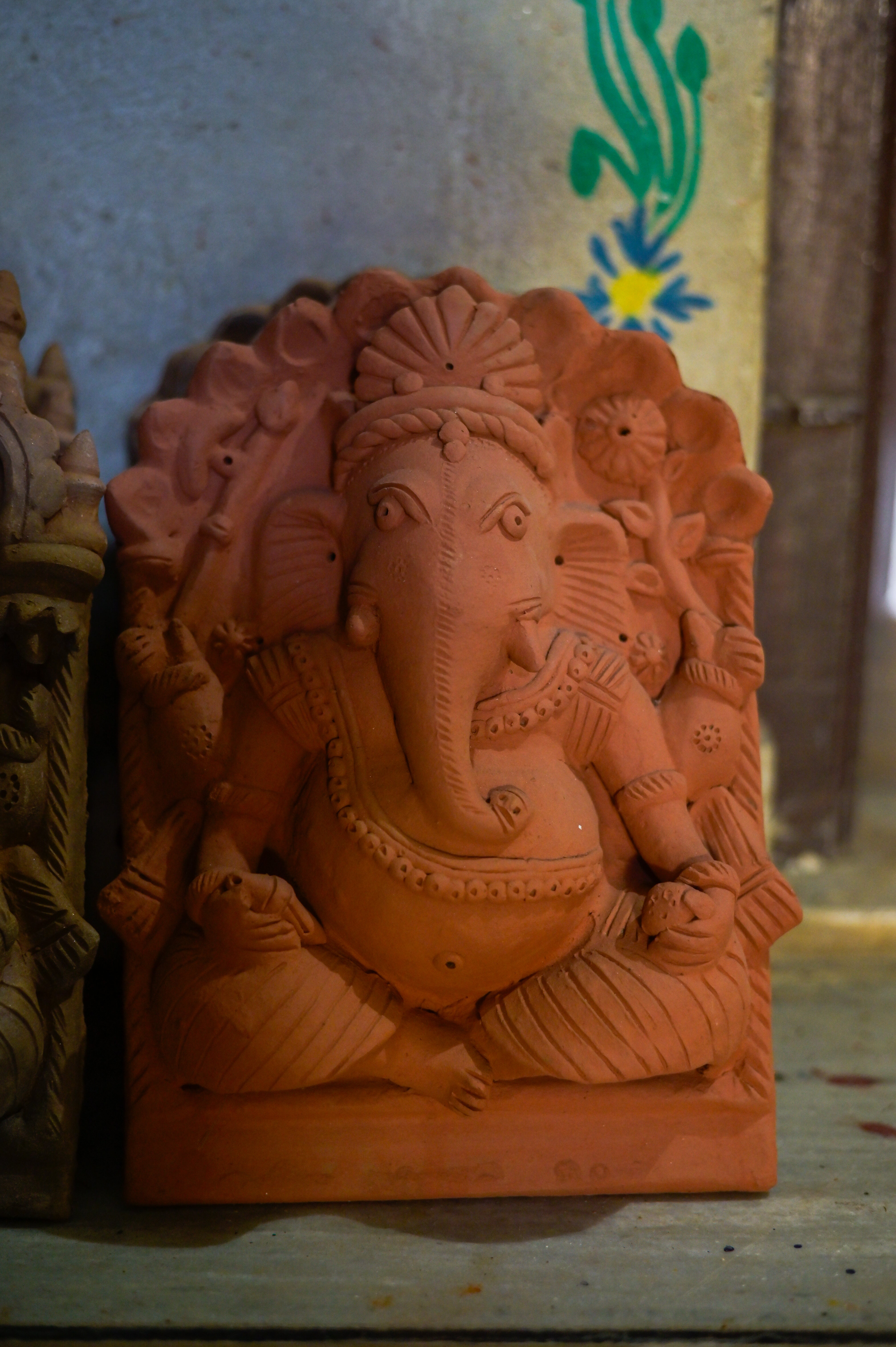 This exquisite Ganesh idol is crafted in the traditional Molela terracotta style, a revered pottery art form native to the small town of Molela in Rajasthan, India. Handmade by skilled artisans, the idol is sculpted from locally sourced clay and sun-dried before being fired in a kiln, giving it a distinct earthy hue and rich texture.