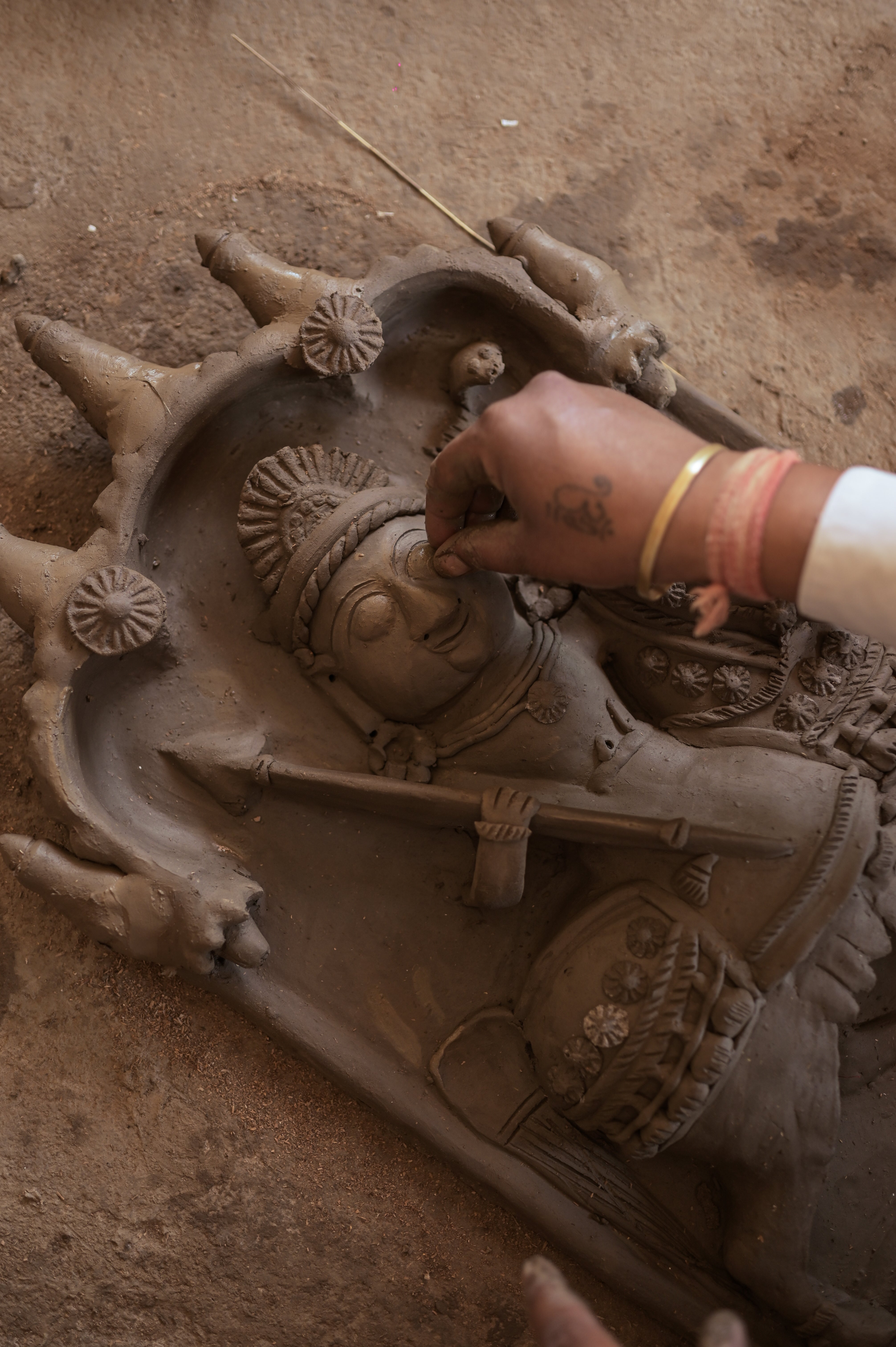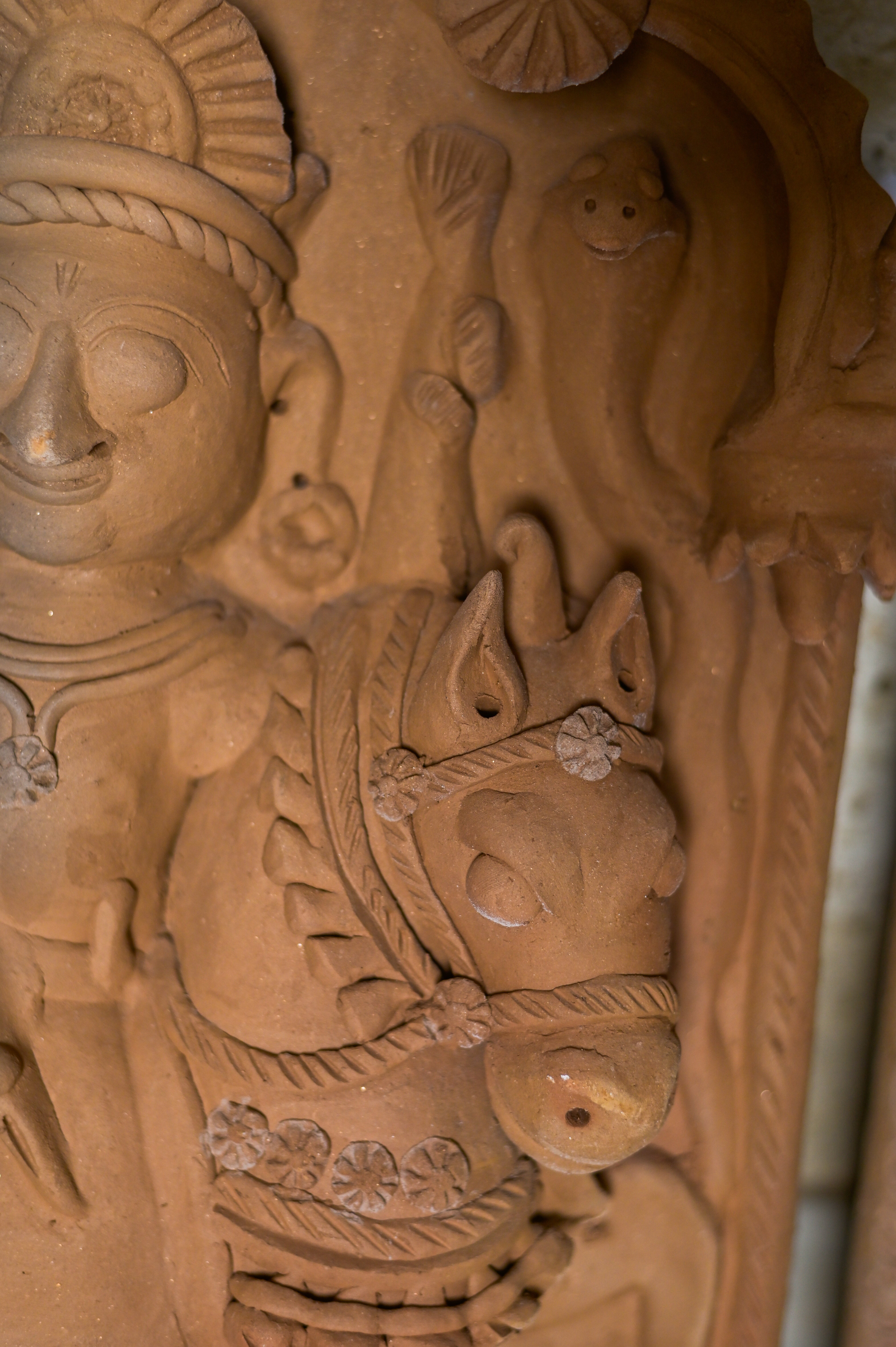This intricately crafted Terracotta sculpture depicts Dharamraj, also known as Yama, the revered god of death and justice in Hindu tradition. As the judge of souls, Dharamraj holds a vital role in the cycle of life, death, and rebirth (samsara), embodying the principles of balance and fairness in the afterlife.