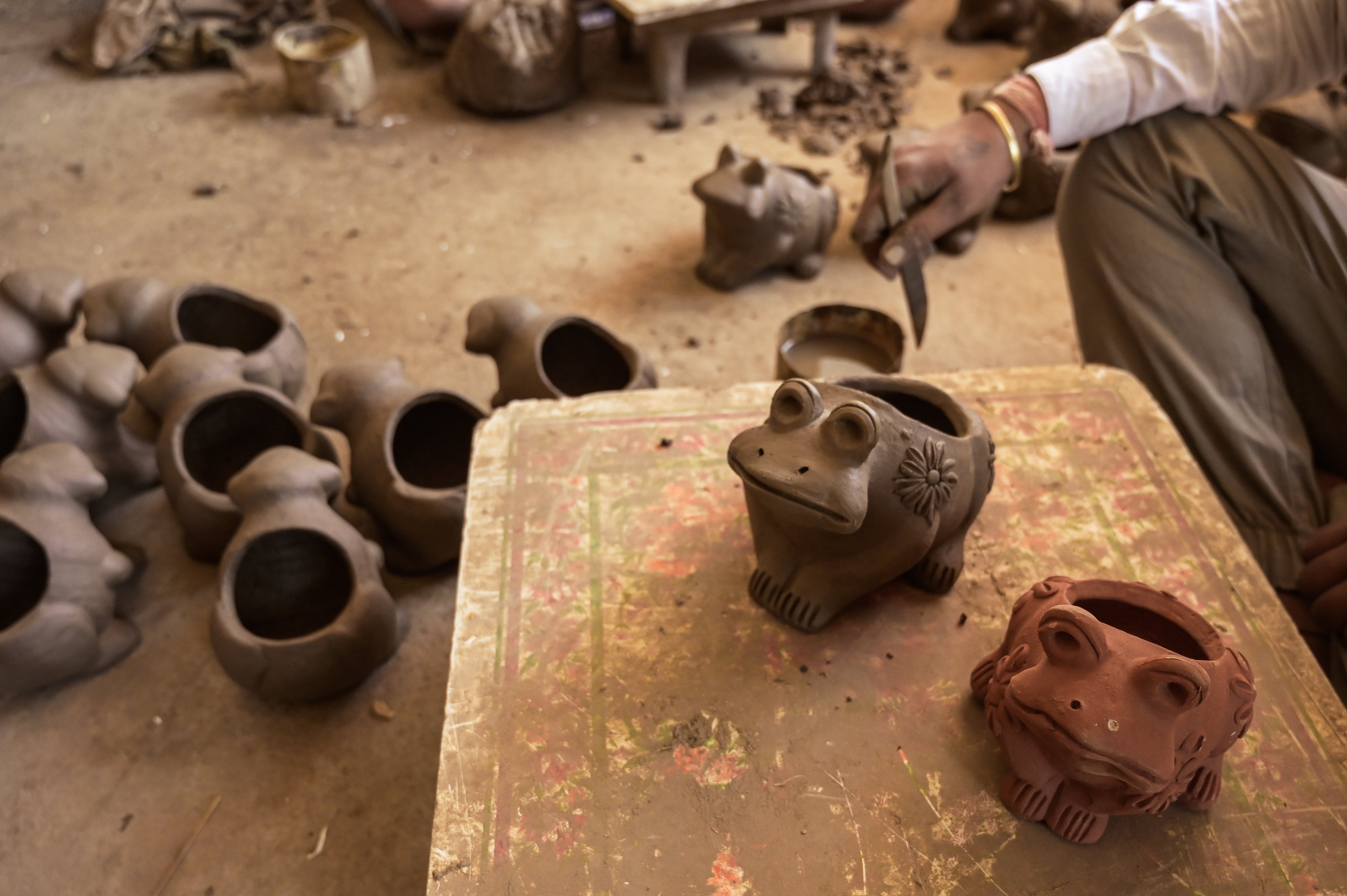 This handcrafted terracotta frog from Molela, Rajasthan, is a symbol of fertility, prosperity, and the monsoon rains. Made from locally sourced clay, it features intricate hand-etched textures and a rustic reddish-brown finish. Each piece is sun-dried and kiln-fired for durability, showcasing the traditional craftsmanship passed down through generations. Perfect for home décor, garden accents, or cultural keepsakes, this unique figurine blends natural inspiration with timeless artistry.